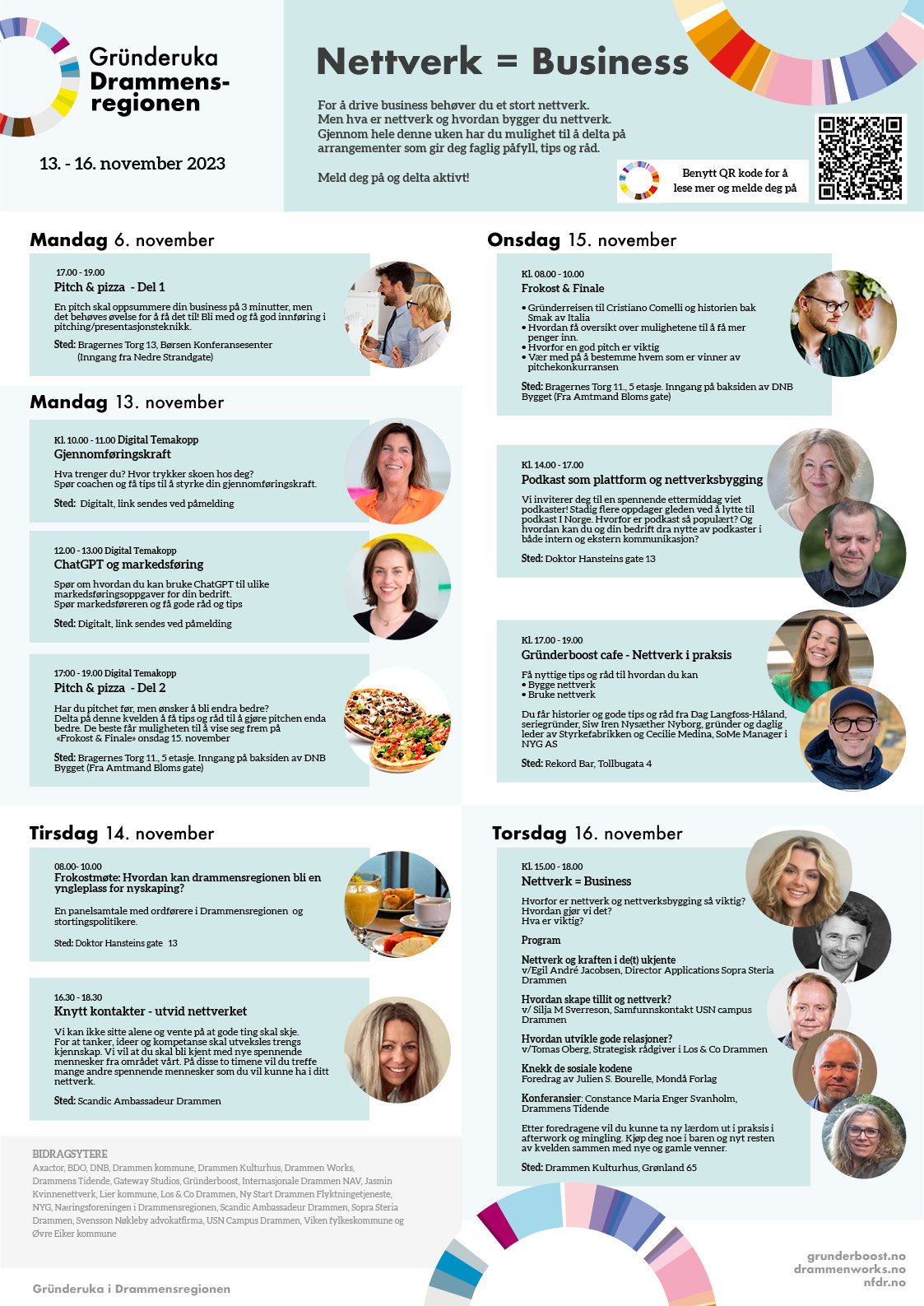 Vi er stolt av å kunne presentere disse arrangementene og vi kunne ikke klart det uten våre samarbeidspartnere. Årets gründeruke vil gi deg nyttige erfaringer, praktiske verksteder, inspirasjon og verdifulle kontakter. Gründeruka i Drammensregionen er en del av Global Entrepreneurship Week, en internasjonal kampanjeuke som foregår i mer enn 200 land.