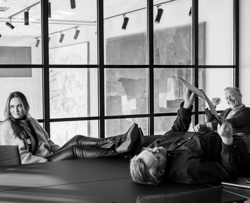 «Det er godt vi kjenner hverandre», sier Line. Når man skal starte business sammen er det mye å ta stilling til. Sammen skulle vi bygge en solid «grunnmur» umiddelbart, basert på våre felles verdier, klare retningslinjer, ha tillit til den andre, raushet til å «løfte den andre» frem, men også i forhold til de ulike fagområdene, og det synes jeg vi er gode på alle sammen. Christian er den rolige, det er han som har størstedelen av etablering, drift etc, og kaller seg gjerne «Eiendomssjef til leie». Line er som hun selv sier «hopp og sprett» den som er full av ideer og i tillegg har ansvar og full kontroll over det markedsmessige, samt dealmakeren. Jon er den stødige, faglig meget sterke og alltid engasjerte eieren som er med på det meste