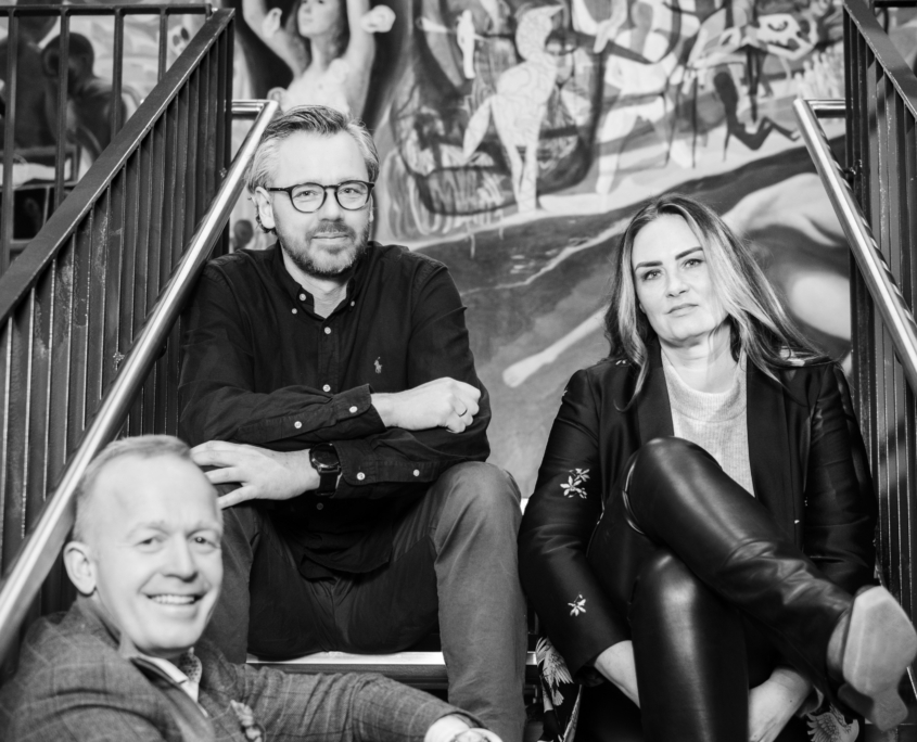 Line og Christian møttes for første gang i 2006, den gang hadde de kontor ved siden av hverandre, hun arbeidet som næringsmegler, han som eiendomssjef. For ca 4 år siden møttes de igjen, da på samme arbeidsplass og jobbet side om side. De fant fort ut at de jobbet godt sammen, hadde de samme grunnleggende verdier og var rett og slett et godt team. De oppnådde suksess og etter hvert kom ideen om å starte noe sammen. Det har de nå gjort og med på laget har de advokat Jon Søland fra advokatfirmaet SGB Storløkken. Jon er tidligere skolekamerat av Line, samt tidligere kollega av Christian i Omsorgsbygg, selv Drammensgutt og en del av den gylne årgangen født i 1977 som vi tuller om at er et kriterie for å henge med oss. Jon var et naturlig førstevalg for oss når vi bestemte oss for at man ikke ser helhet på eiendom uten det juridiske sammen med Jons personlige egenskaper og driv. «Det er viktig å være i forkant og vi vet når vi skal bruke juristen for å slippe rettsaker», sier Christian.